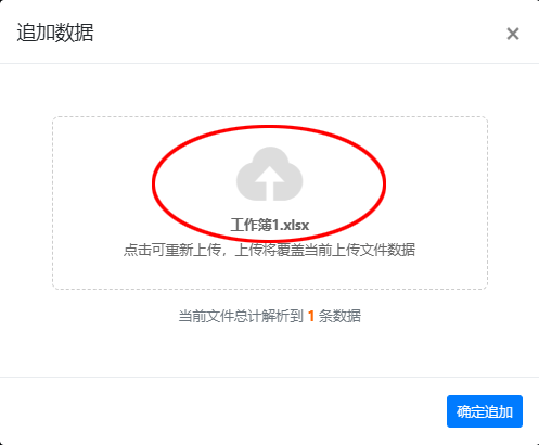 - 在弹出的上传框内拖入追加数据的Excel文件(不包含之前数据,不然会重新全部生成),点击“确认追加”,即可生成新的一批二维码。