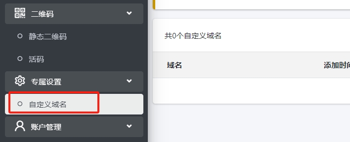 选择左侧菜单中的【专属设置】-【自定义域名】
