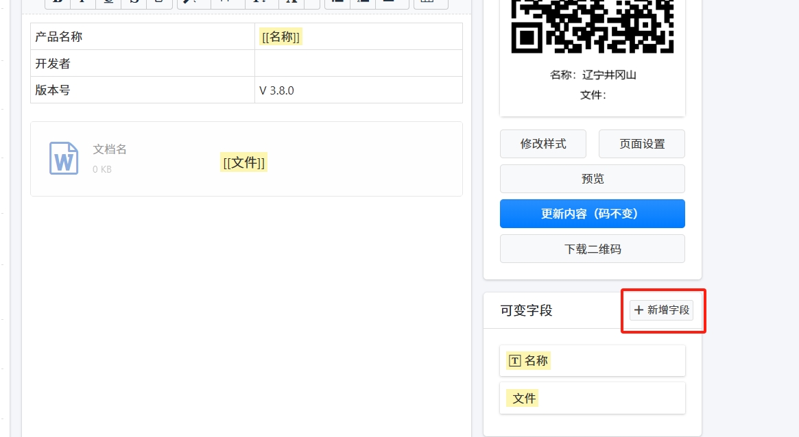 在这里可修改每个二维码的数据,上传图片和文件信息