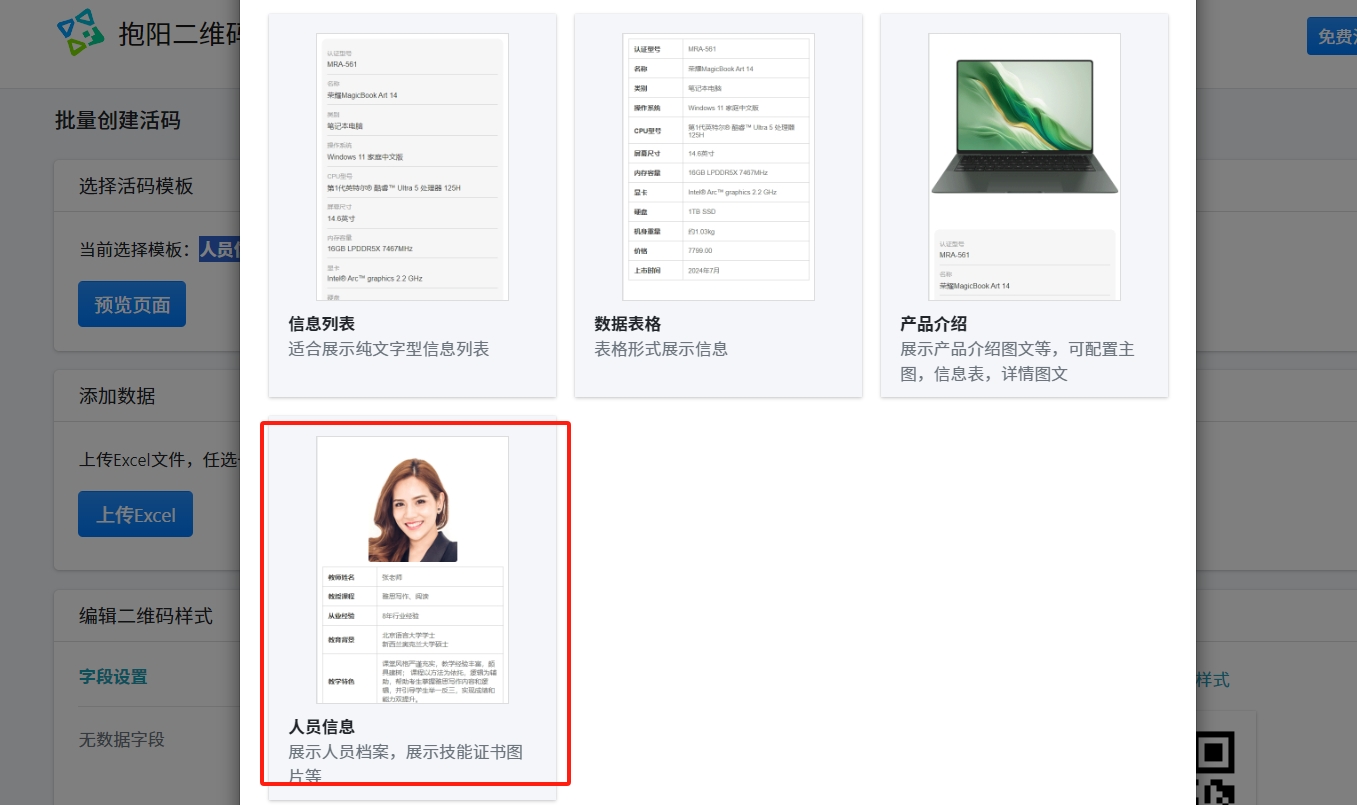 在选择活码模板中,选择【人员信息】模板