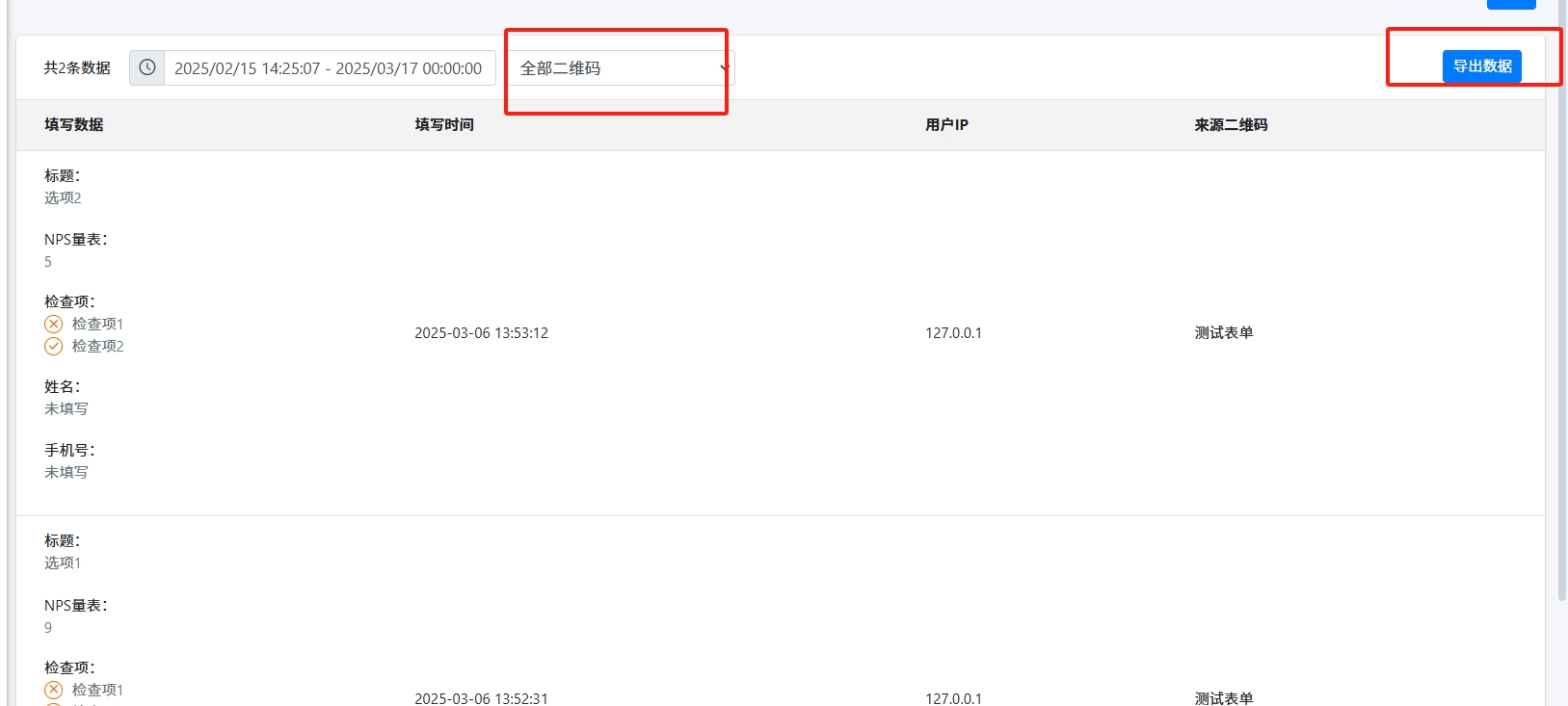 如果一个表单在多个二维码中使用,可以分二维码查看数据