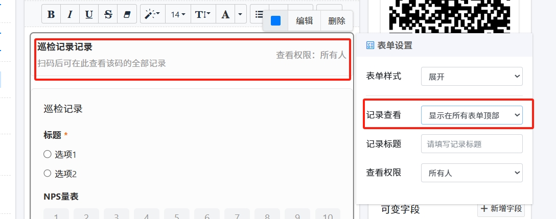 如果在二维码模板中,设置了查看数据的入口,则可以看到该二维码对应表单的数据