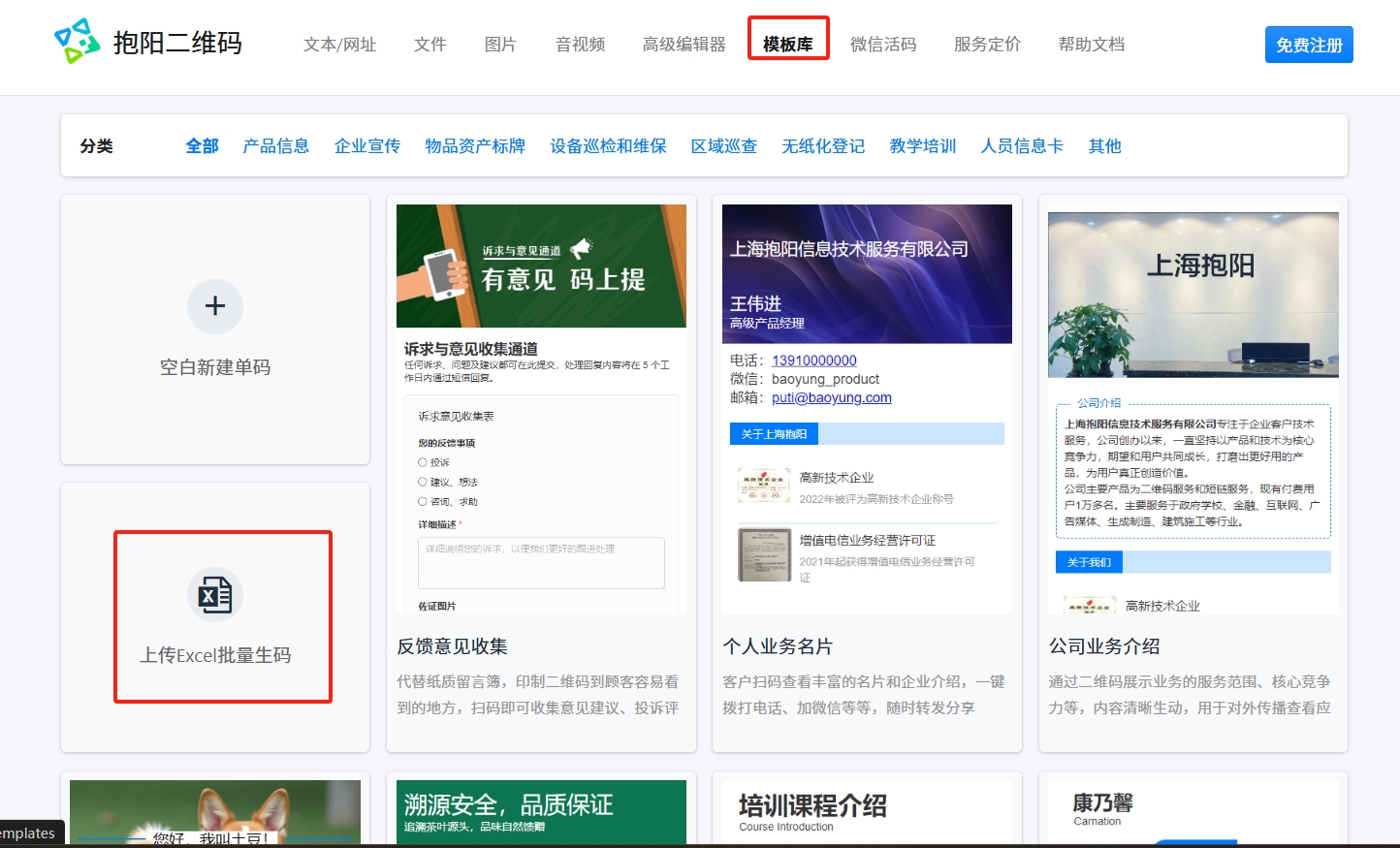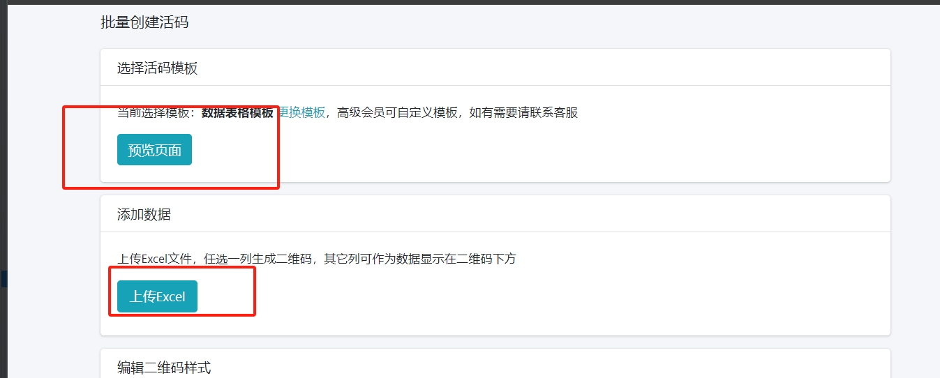 一、点击模板->【上传Excel批量生码】