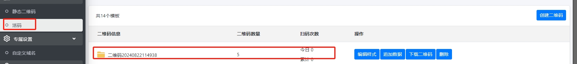 - 可以在管理后台,看到刚才上传生成的活码码
