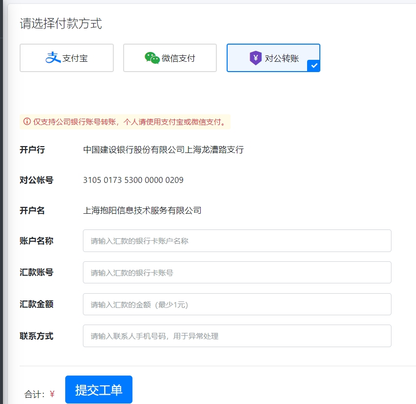 转账完成后,提交贵司的公司信息和转账流水等信息